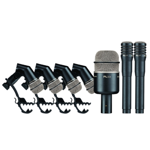 PL DK7 The PL DK7 is a ready-for-the-gig microphone solution for a five-piece drum kit containing one PL33 dynamic, supercardioid, kick drum mic, four PL35 dynamic, supercardioid, tom/snare mics, and two PL37 condenser cardioid, overhead/hi-hat mics. The PL DK7 is packaged in a high-quality, firm-exterior 600 Denier nylon gig bag with shoulder strap.